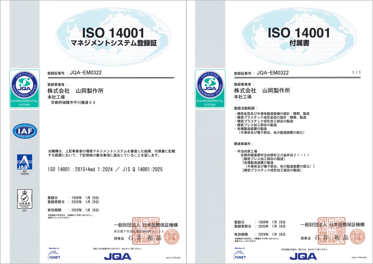 | 認証規格 | ISO9001:2015 | ISO14001:2015 |