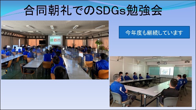 全社で月に1回開催している合同朝礼中に『SDGs情報コーナー』を設け、