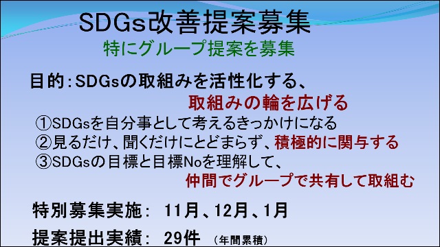 11月、12月、1月の3ヶ月間を『SDGs提案 特別募集期間』として設け、